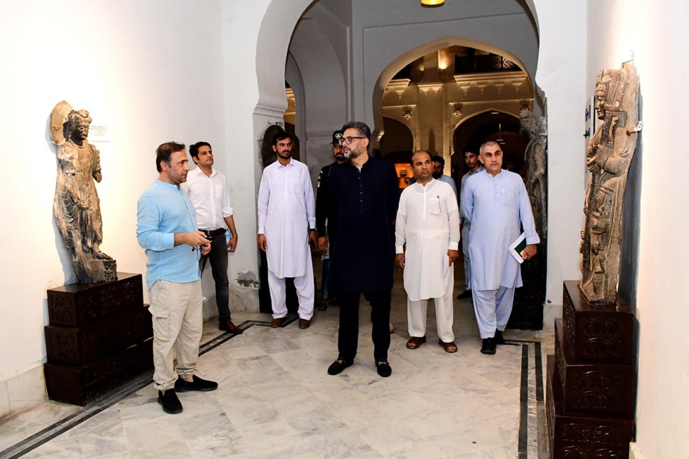 Dr. Samad Khan and Dr. Saqib Raza accompanying Mr. Muzammil Aslam, the Finance Minister of Khyber Pakhtunkhwa, in the Gandhara gallery.