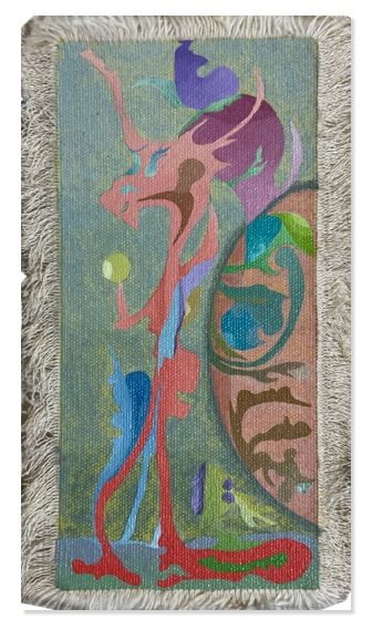 Gillani’s “Grapevine” vines organic lines across the board, tendrils of green and purple twisting in a dance of growth and entanglement. The oil flows freely, pooling in vine-like curves that evoke whispered rumors or neural pathways. Leaves emerging in halves, their edges feathering into the background, symbolizing connections that nourish yet deteriorate, The warm undertones ground the whimsy, the depth carries its own charm in there; feels incomplete but turning a simple motif into a rumination on community and isolation. Through these works, Gillani folds the intangible into tangible form, her brush a tool for unraveling the folds of daily existence.
