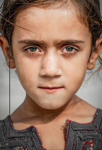 In contrast, The Gaze of Innocence (April 2020) offers an intimate portrait of Bisma, a child from Palleri. Centering on the child’s expressive eyes, radiating innocence and emotion, the close-up composition creates a powerful connection and highlights the human element within the cultural context. Together, these works juxtapose the grandeur of nature with the vulnerability of youth, each executed with a keen eye for detail and resonance.