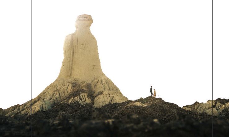 The series opens with The Three Pillars of Pishukan, a striking aerial view capturing the coastal town of Pishukan in Gwadar, where golden waves caress the sandy shores in a poetic embrace. The symmetry and interplay of light and shadow evoke a sense of timelessness, suggesting the pillars as both physical and metaphorical supports of the community. This work sets a tone of reverence for the land’s natural architecture, inviting viewers to ponder the resilience embedded in its rugged outlines.
