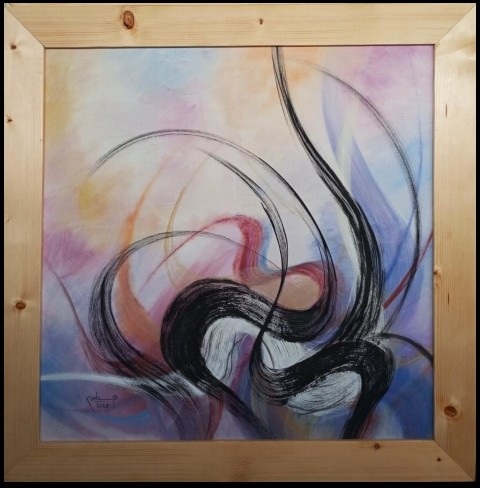 Hassan recalls this piece as stemming from a “seaside memory” and the “soundtrack” of waves, yet it abstracts these elements into a non-objective form. This transformation aligns with Abstract Expressionism’s emphasis on evoking universal emotions over literal depiction. The balance of “tension” and “stillness” suggests a dynamic interplay, perhaps the tension of memory meeting the stillness of abstraction. A ship-like form could symbolize a journey through memory or the subconscious, while the absence of a light source reflects a search for meaning within ambiguity. The contrast between grounded, weighty strokes and ethereal light creates a push-pull rhythm, echoing the artist’s movement from specific inspiration to abstract resolution.