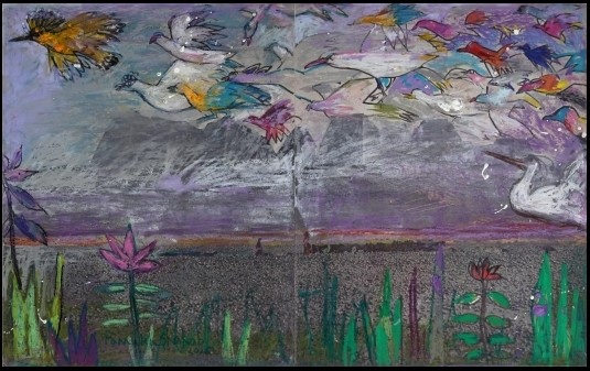 Shahab’s Bird Series extends themes from earlier exhibitions such as Avian Humanoid and Ethereal Bond, where birds embody the deep bond between humans and nature. The composition also carries traces of his early portraiture, evident in expressive human faces that retain classical grounding while transforming into symbolic forms.