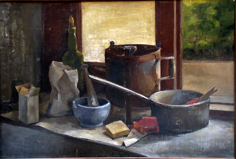 Still Life with a Pan and Angithi by Naseem Hafeez Qazi (1970s)