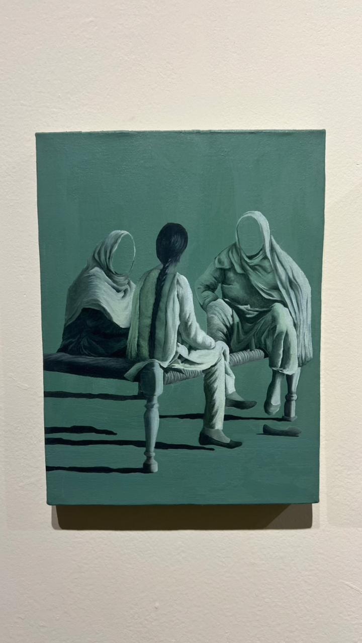 Zukhruf Farooq offers monotone galore infused with nostalgia, like poetry where elderly family figures sit within old school curated furniture. The emotional experience is unlike any other. ‘Held By Her Presence’ truly hits home, presenting gentle outdoor sitting scapes where every artwork radiates warmth, as if it is something we have been missing or perhaps something we have outgrown in our curation of life. The scenes draw from daily rituals we often overlook, unfolding a classic tale of memory through her drawings.