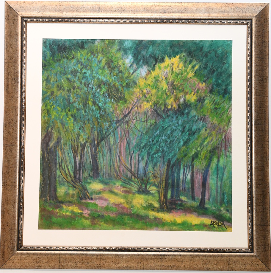 She was born in 1933 in Gujrat with the maiden name Abida Kiyani. She completed her matriculation in 1948 from Government Girls High School, Montgomery. Opting for Fine Arts, she joined Lahore College for Women and completed her Intermediate and B.A. in 1950 and 1952 respectively. A subsidiary passion for literature led her to join Oriental College, Lahore, where she obtained a Master’s degree in Urdu literature in 1955. However, the very next year she returned to her true passion and joined the University of the Punjab for Fine Arts, acquiring a Master’s degree in the subject.